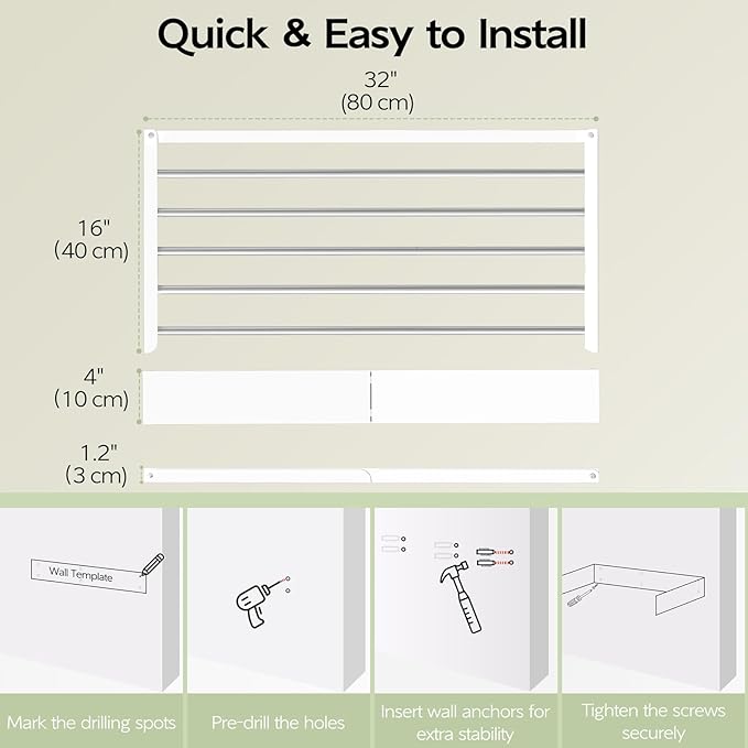 AirFold – Veggmontert Tørkestativ (Sammenleggbart & Plassbesparende)