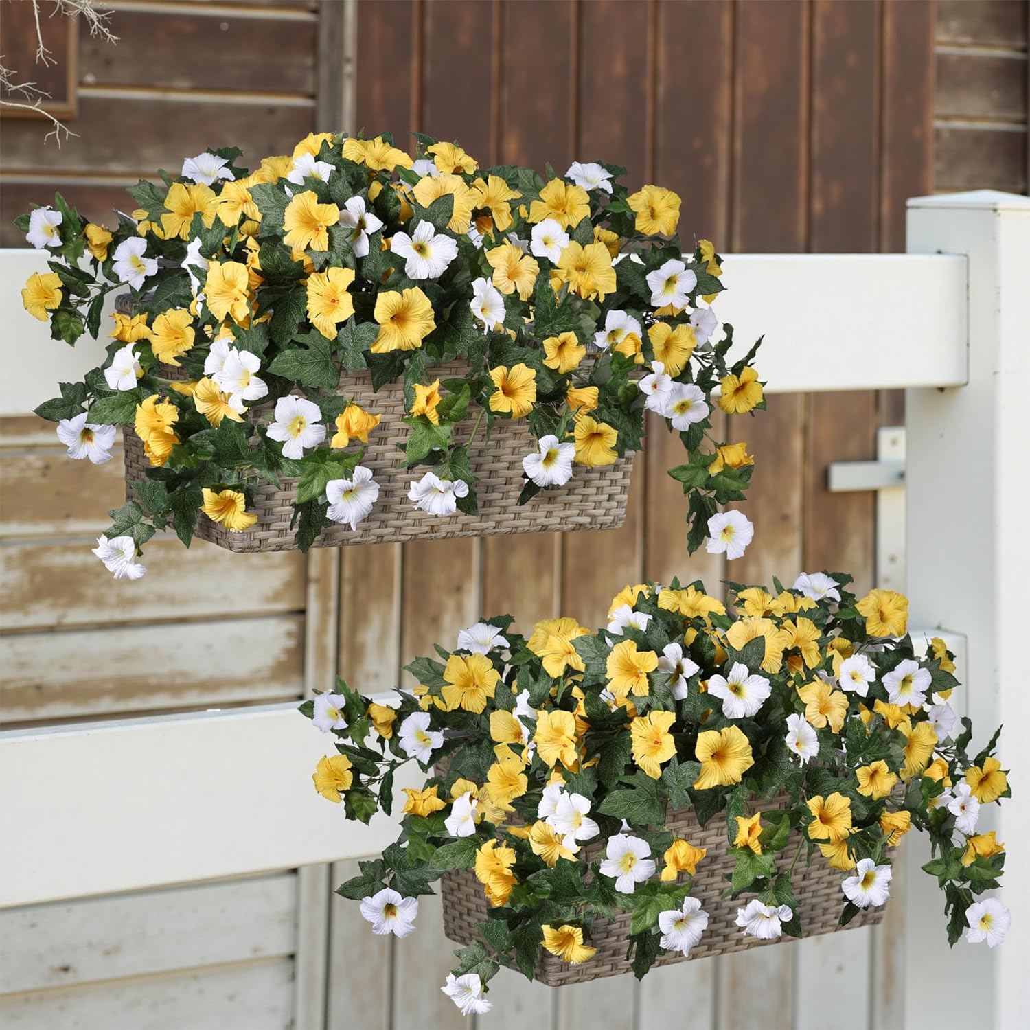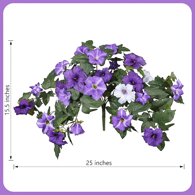 Everbloom petuniaer gir deg et levende og fyldig uttrykk uten behov for vanning, beskjæring eller vedlikehold. De naturtro kronbladene i silke, kombinert med realistisk bladverk, skaper et mykt og elegant helhetsinntrykk som holder seg like vakkert hver dag.